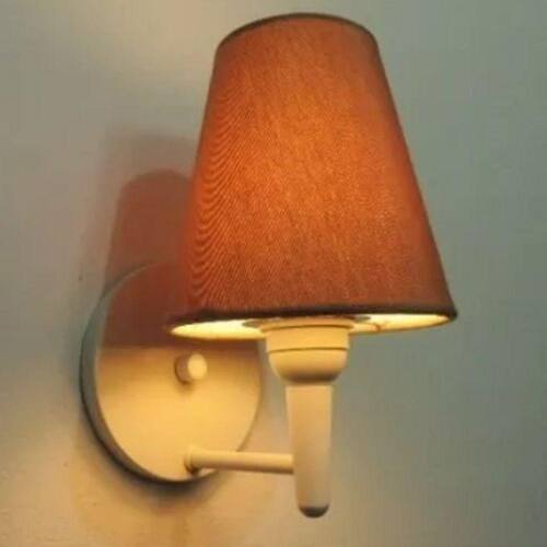 Arandela de Cabeceira e Camarim Cone Md-2004 Base Branca Cupula em Tecido 14/14x07cm Palha
