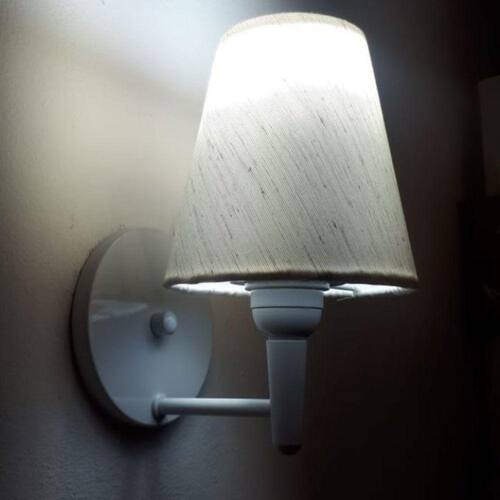 Arandela de Cabeceira e Camarim Cone Md-2004 Base Branca Cupula em Tecido 14/14x07cm Linho Bege