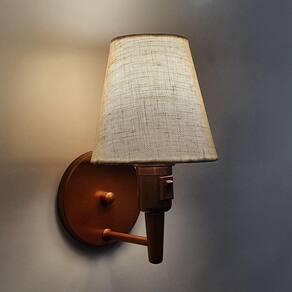 Arandela Cone Md-2013 Cobre Com Liga e Desliga Cúpula Tecido Rustico Bege - Bivolt