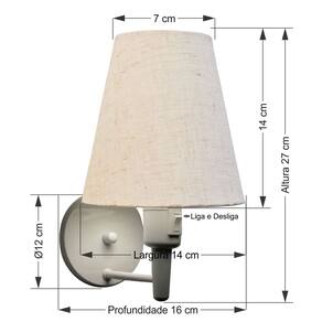 Arandela Cone Md-2013 Branco C/ Inter Liga e Desl Cúpula em Tecido Rustico Bege - Bivolt