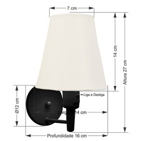 Arandela Cone Md-2013 Preto C/ Inter Liga e Desl Cúpula em Tecido Branco - Bivolt