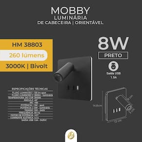 Além disso, a arandela é bivolt, o que significa que pode ser instalada em qualquer voltagem entre 100 e 240V. Ela também possui frequência de 50/60hz e corrente de 0.7 e 1.5A. A saída USB tem corrente de 1.5A e 5V/DC.