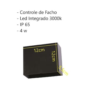 Arandela de Efeito Led Dron 2 Fachos RegulávelMaterial: AbsCor: Preto FoscoMedidas: Largura 12cm x Altura 12cm x Profundidade 5,5cmIluminação: Led Integrado Duplo Luz Amarelada 3000k (Luz Quente)Modelo: Sobrepor Com 2 Fachos RegulávelIndicação: Para uso em Paredes Externas ou Internas IP65Voltagem: BivoltPotência: 4wFluxo Luminoso: 260 LmPeso: 400gQuantidade: 01 Unidade