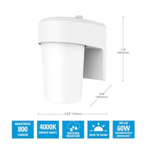 A arandela externa de LED branca HALO FE de 1 luz com 1 luz e do anoitecer ao amanhecer