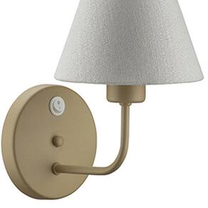 Arandela de Parede em Alumínio Dourado Cúpula Tecido Natural com Interruptor Luminária Quarto Cabeceira
