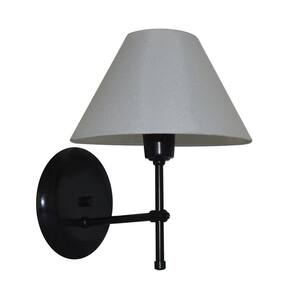 Arandela de Parede modelo em T Base na cor Preto e Cúpula na cor Branco. Feita de Alumínio e Cúpula de Algodão.