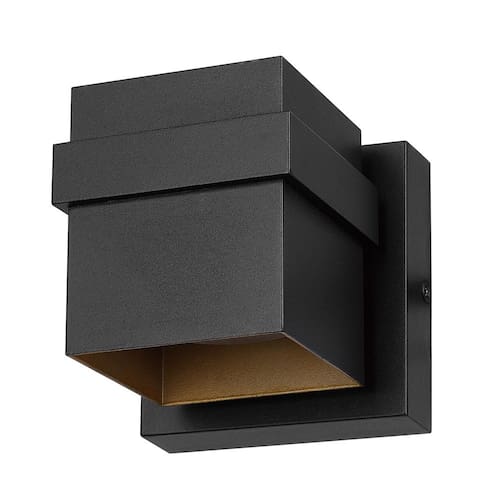 GLOBE Arandela de parede elétrica 60000022 LED integrada de 11,5 W, preto fosco, detalhes dourados, 400 lúmens, 3000 Kelvins, 90 CRI, decoração de varanda frontal ou traseira, iluminação externa