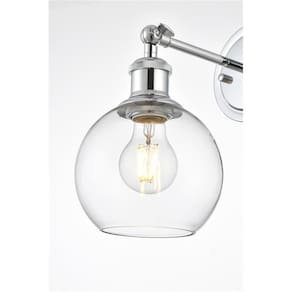 - Material: metal (ferro), vidro - Acabamento: cromado, transparente, preto - Uso do quarto: banheiro - Iluminado por 1 lâmpada E26, lâmpadas não incluídas - Ajuste a sombra na parte superior para obter a iluminação perfeita