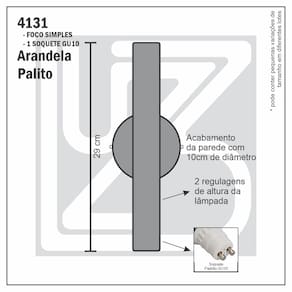 Com uso de soquete GU10 vc pode de forma prática e rapida substituir a lâmpada LED. A nossa arandela PALITO também possui recurso interesante, pode alterar a posição da lampada proporcionando um facho de luz mais aberto ou mais fechado, assim você pode ajustar a intensidade da luz para criar o ambiente ideal para cada ocasião.
