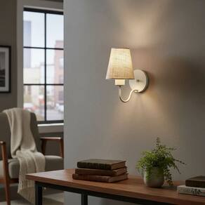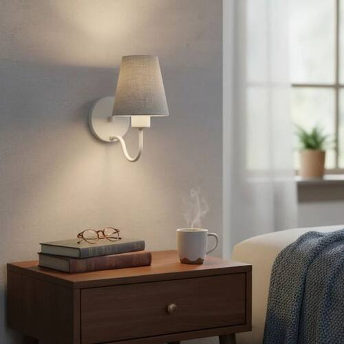 Arandela de Parede com Cúpula em Tecido Rustico Cinza – Iluminação Sofisticada e Funcional