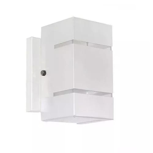 Arandela Dois Fachos Frisos Efeito Uso Externo 1401 - Branco Arandela Dois Fachos Frisos Efeito Uso Externo 1401 - BRANCO n Arandela 2 fachos, em alumínio não enferruja. Ideal para ser usada em área externa e interna, com pintura eletrostática e vidros tem uma durabilidade maior. Especificações: Material: alumínio, vidro. Voltagem: bivolt. Soquete: G9 Usa 1 lâmpada de led de até 9w ou halopim de até 40w. n Marca: Não Informado