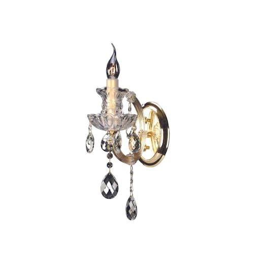 Cód: 14209-PL Arandela Dourada com Cristais 1E14 25cm Soquete: 1*E14 (Lâmpada não inclusa) Material: Alumínio e Cristal Cor: Dourado Dimensões: 25x12x24cm (AxLxC)