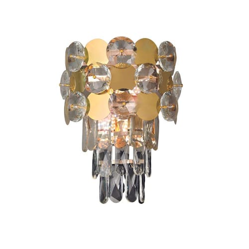 Cód: 13585-PL Arandela Dourada com Cristais Transparente Soquete: 2*E14 (Lâmpadas não inclusas) Material: Metal e Cristal Cor: Dourado e Transparente Dimensões: 29x22x13cm (AxLxC)