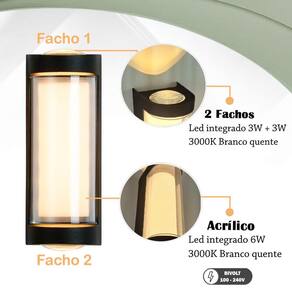 - Led: Led dos fachos: Branco quente 3W + 3W 3000K Led do acrílico: Branco quente 6W 3000K