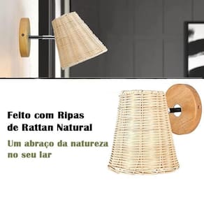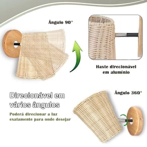 Arandela Fibra Natural Ratan Foco Móvel Cabeceira Boho Nat94