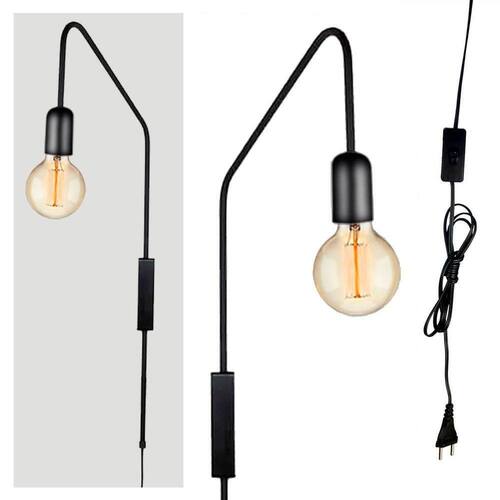 Descrição Técnica: - Modelo: ARANDELA FLUXO - Acabamento: Pintura a pó térmica - Quantidade de soquetes: 1 - Material: Tubo em Alumínio - Tamanho (AxC): 58 cm x 28 cm - Cabo: Cabo paralelo com interruptor deslizante e plug injetado - Soquete: Padrão E27 com revestimento na cor preto - Bivolt: Sim **Lâmpadas vendidas separadamente**