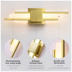 A arandela LED LOSNEOLAZ apresenta um design minimalista e moderno, com tubos de acrílico que distribuem a luz uniformemente, criando um ambiente acolhedor. Ela pode ser instalada tanto horizontal quanto verticalmente, sendo uma boa opção para quartos, banheiros, salas de estar, cozinha, corredores, exposições de arte e cômodas. Feita de metal resistente com acabamento dourado delicado, possui forte resistência à corrosão e não enferruja facilmente. O abajur de acrílico é resistente e tem bom desempenho de transmissão de luz, iluminando todos os espaços da casa. A instalação é fácil e rápida, e o pacote contém todo o hardware necessário e um manual de instruções. A iluminação de parede LOSNEOLAZ se preocupa em fornecer produtos de alta qualidade e um serviço pós venda satisfatório.