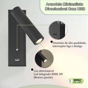 Uma arandela de leitura com entrada USB oferece uma combinação perfeita de funcionalidade e praticidade. Além de proporcionar uma iluminação direcionada e confortável para leitura, ela permite carregar dispositivos eletrônicos, como celulares e tablets, sem a necessidade de ocupar tomadas adicionais.