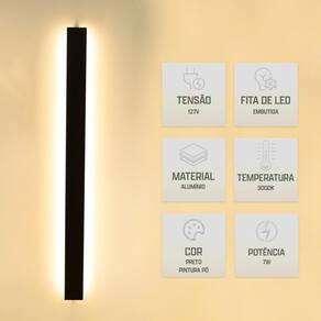 Arandela Luminária Parede Linear Led Indireta 1M 110V Preto