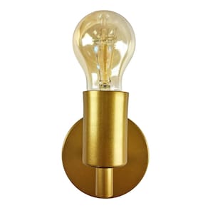 Modelo: arandela Cor es : dourado Material: alumínio Canopla de teto: alumínio 12cm Luminária: 1 soquete e27 Número de lâmpadas: 1 lâmpadas não inclusas Voltagem: 127v/220v Medida: 10 x 9 cm Peso líquido: 0,400 kg