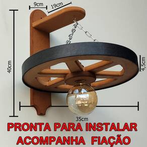 Luminária roda de carroça replica rustico, fabricado em mdf e pintado a mão. Envernizado deixando um acabamento envelhecido perfeito.