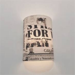 Arandela Meia Cana Retro Vivare Md-2003 Cúpula em Tecido 25/18x10cm - Bivolt - Cor: Estampado-jornal | Voltagem: 127/220V