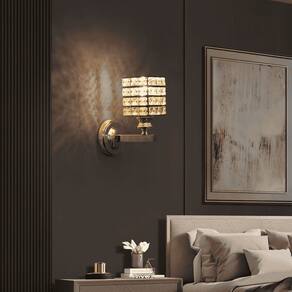 Arandela Metal Dourado e Cristal Quadrada 1E27 15cm