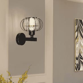Arandela Metal e Cristal Preto Redonda 1E27 14,5cm
