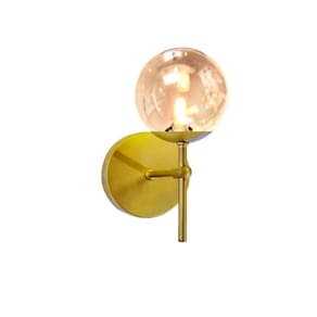 Arandela Moderna JabuticabaMateriais: Metal, VidroCor: DouradoMedidas: Largura 13cm x Altura 28cm x Profundidade 18cmGlobo de Vidro: Diâmetro 13cmLâmpada: 1 Lâmpada Modelo Bipino G9 Obs. Lâmpada Não Inclusa Compatível com Lâmpada Led Bipino G9Modelo: Sobrepor Arandela Para Uso InternoVoltagem: BivoltItens Inclusos:1 Arandela1 Globo de Vidro
