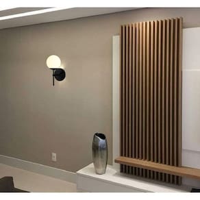 Arandela Moderna JabuticabaMateriais: Metal, VidroCor: Preto FoscoMedidas: Largura 13cm x Altura 28cm x Profundidade 18cmGlobo de Vidro: Diâmetro 13cmLâmpada: 1 Lâmpada Modelo Bipino G9 Obs. Lâmpada Não Inclusa Compatível com Lâmpada Led Bipino G9Modelo: Sobrepor Arandela Para Uso InternoVoltagem: BivoltItens Inclusos:1 Arandela1 Globo de Vidro
