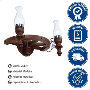 Arandela Muller Roda Carroça 2 Lâmpadas Envelhecida 902e - Estilo rústico que encanta à primeira vista! - A Arandela Muller Roda de Carroça 902E Envelhecida traz o visual marcante das antigas rodas de carroça com um acabamento artesanal que transmite autenticidade, calor e personalidade ao ambiente. - Com espaço para 2 lâmpadas, oferece iluminação eficiente e um toque nostálgico que valoriza qualquer parede. - Produzida em madeira de reflorestamento e metais de alta resistência . - Ideal para áreas gourmet, varandas, corredores ou espaços temáticos . - Transforme sua decoração com uma peça exclusiva e cheia de história! ARANDELA MULLER RODA CARROÇA 2 LÂMPADAS ENVELHECIDA 902E Marca: Muller Modelo: Roda de Carroça