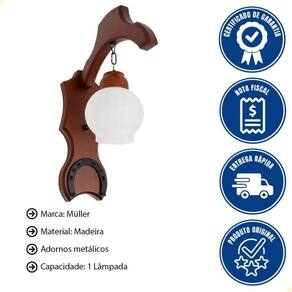 - Adicione charme e personalidade ao seu ambiente com a Arandela Muller Sela de Cavalo 1LP Envelhecido 930E.