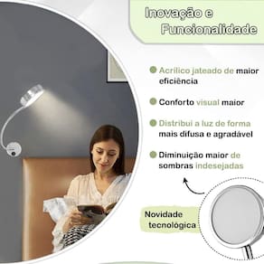 Uma arandela de leitura com tecnologia de LED aprimorada combina design funcional e conforto visual. O LED atualizado oferece uma luz mais difusa e uniforme, eliminando sombras intensas e pontos de brilho que podem causar desconforto ocular. Ideal para ambientes de leitura ou relaxamento. Além disso, o design é moderno e compacto, com ajuste direcional que permite posicionar a luz de forma precisa, atendendo às necessidades de quem lê ou trabalha.
