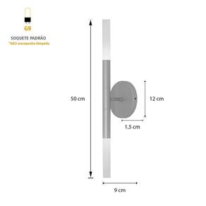 Tudo para iluminar seu ambiente com muito charme Perfeito para todos os ambientes Modelo: single light Cor es : dourado Material: alumínio Base canopla : 12 x 1.5cm Luminária: soquete g9 Número de lâmpadas: 2 lâmpadas não inclusas Voltagem: 127v/220v Medida: 12 x 50cm Conteúdo da embalagem: 1 luminária Profundidade : 9cm
