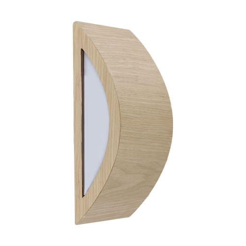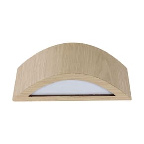 Arandela Parede Meia Lua Madeira E27 Cor: Marfim Arandela Meia Lua Material : Lâmina de Madeira Natural Medidas : Altura 30cm Largura 13cm Comprimento 9cm Possui difusor em acrílico Utiliza soquete E27 - Lâmpada não inclusa