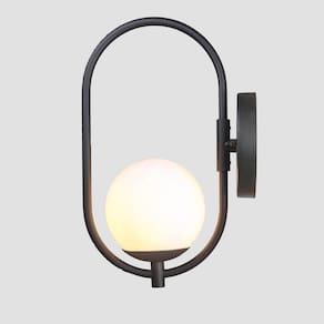 Arandela Parede Online Preta Globo De Vidro Branco