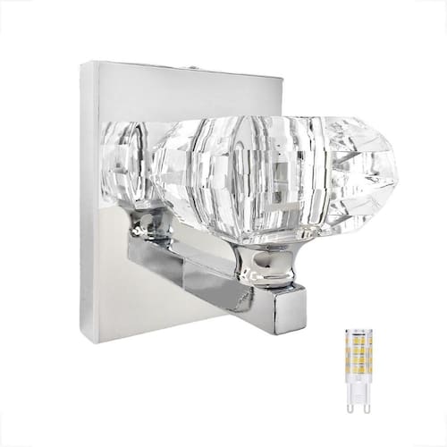 Descrição: - materiais: metal e cristal k9. - dimensões do cristal cxlxa : 7 cm x 7 cm x 4 cm - dimensões da base: Altura: 12 cm Largura: 10 cm Profundidade: 2 cm - profundidade total da arandela: 10 cm