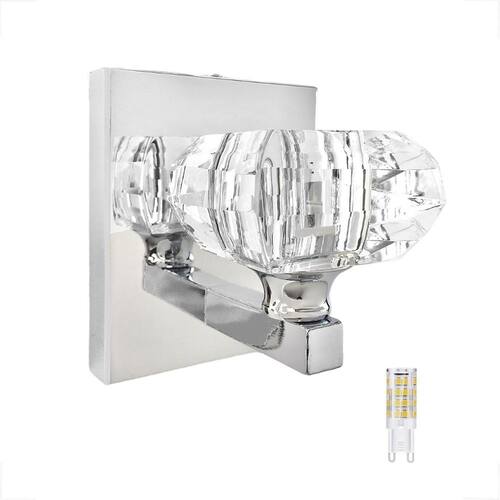 Descrição: - materiais: metal e cristal k9. - dimensões do cristal cxlxa : 7 cm x 7 cm x 4 cm - dimensões da base: Altura: 12 cm Largura: 10 cm Profundidade: 2 cm - profundidade total da arandela: 10 cm