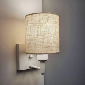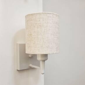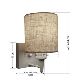 Arandela Quadrada Md-2033 Branco Cúpula em Tecido Cilíndrica Rustico Bege - Bivolt