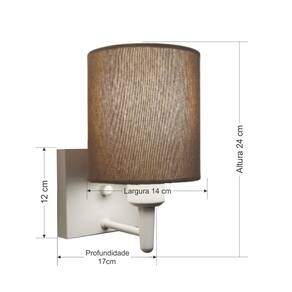 Arandela de parede Quadrada Md-2033 Branco Cúpula em Tecido Cilíndrica Caqui - BivoltAs arandelas Lustres Vivare são elementos versáteis e elegantes que podem transformar qualquer ambiente em um espaço cheio de estilo. Seja para adicionar uma iluminação suave, destacar uma parede ou criar um efeito de luz diferenciado.Dimensão: Cúpula em Tecido: 14x15cm Arandela de parede Montada: Altura 24cm Largura 14cm Profundidade 17cm Formato: Quadrado / Cilíndrico Tamanho: Pequeno Especificação: Material: Cúpula em Tecido Estrutura em Alumínio Base Parede: Quadrado 12x12x2cm Resistente: Á Maresia Voltagem: 110V/220V Liga e Desliga: Não Tipo de Soquete: E27 Lâmpada Utilizada: Led Bulbo Até 16w ou Fluorescente Espiral Até 25w cada Capacidade de Lâmpadas: 1 Observação: Acompanha Lâmpada: Não Possui Led Integrado: Não Garantia: 12 Meses Manual de Instalação: Sim Arandela de parede Montada: Sim Controle de Luminosidade: Não Tipo de Embalagem: Caixa Conservação e Manutenção do Produto: A Limpeza deve ser realizada com o produto desligado. Remova o lustre que pode ser lavado com sabão neutro. Nunca utilize produtos químicos e abrasivos Dica: Antes de comprar o seu produto verifique as medidas, o local onde pretende instalar e se necessário o serviço de um profissional qualificado.