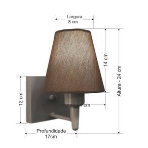 Arandela Montada: Altura 24cm Largura 14cm Profundidade 17cm