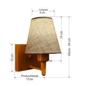 Arandela de parede Quadrada Md-2034 Cobre Cúpula em Tecido Cone Rustico Bege - BivoltAs arandelas Lustres Vivare são elementos versáteis e elegantes que podem transformar qualquer ambiente em um espaço cheio de estilo. Seja para adicionar uma iluminação suave, destacar uma parede ou criar um efeito de luz diferenciado.Dimensão: Cúpula em Tecido: 14x07x14cm Arandela de parede Montada: Altura 24cm Largura 14cm Profundidade 17cm Formato: Quadrado / Cone Tamanho: Pequeno Especificação: Material: Cúpula em Tecido Estrutura em Alumínio Base Parede: Quadrado 12x12x2cm Resistente: Á Maresia Voltagem: 110V/220V Liga e Desliga: Não Tipo de Soquete: E27 Lâmpada Utilizada: Led Bulbo Até 16w ou Fluorescente Espiral Até 25w cada Capacidade de Lâmpadas: 1 Observação: Acompanha Lâmpada: Não Possui Led Integrado: Não Garantia: 12 Meses Manual de Instalação: Sim Arandela de parede Montada: Sim Controle de Luminosidade: Não Tipo de Embalagem: Caixa Conservação e Manutenção do Produto: A Limpeza deve ser realizada com o produto desligado. Remova o lustre que pode ser lavado com sabão neutro. Nunca utilize produtos químicos e abrasivos Dica: Antes de comprar o seu produto verifique as medidas, o local onde pretende instalar e se necessário o serviço de um profissional qualificado.