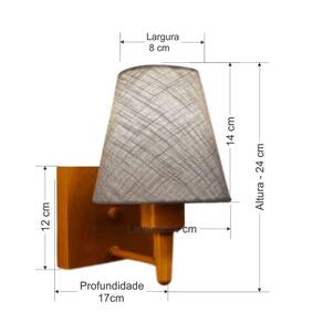 Arandela Quadrada Md-2034 Cobre Cúpula Em Tecido Cone Rustico Cinza - Bivolt Arandela de parede Quadrada Md-2034 Cobre Cúpula em Tecido Cone Rustico Cinza - BivoltAs arandelas Lustres Vivare são elementos versáteis e elegantes que podem transformar qualquer ambiente em um espaço cheio de estilo. Seja para adicionar uma iluminação suave, destacar uma parede ou criar um efeito de luz diferenciado.Dimensão: Cúpula em Tecido: 14x07x14cm Arandela de parede Montada: Altura 24cm Largura 14cm Profundidade 17cm Formato: Quadrado / Cone Tamanho: Pequeno Especificação: Material: Cúpula em Tecido Estrutura em Alumínio Base Parede: Quadrado 12x12x2cm Resistente: Á Maresia Voltagem: 110V/220V Liga e Desliga: Não Tipo de Soquete: E27 Lâmpada Utilizada: Led Bulbo Até 16w ou Fluorescente Espiral Até 25w cada Capacidade de Lâmpadas: 1 Observação: Acompanha Lâmpada: Não Possui Led Integrado: Não Garantia: 12 Meses Manual de Instalação: Sim Arandela de parede Montada: Sim Controle de Luminosidade: Não Tipo de Embalagem: Caixa Conservação e Manutenção do Produto: A Limpeza deve ser realizada com o produto desligado. Remova o lustre que pode ser lavado com sabão neutro. Nunca utilize produtos químicos e abrasivos Dica: Antes de comprar o seu produto verifique as medidas, o local onde pretende instalar e se necessário o serviço de um profissional qualificado.