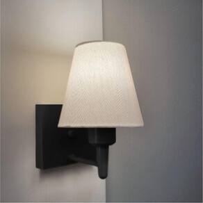 Arandela Quadrada Md-2034 Preto Cúpula Em Tecido Cone Branco - Bivolt
