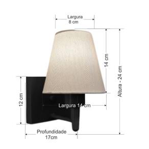 Arandela Quadrada Md-2034 Preto Cúpula em Tecido Cone Branco - Bivolt