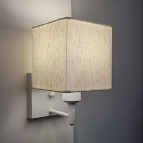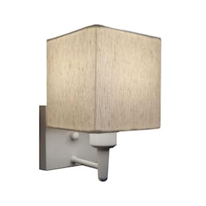 Arandela Quadrada Vivare Md-2006 Base Branco Cúpula Em Tecido - Bivolt Branco-linho-bege 127-220v