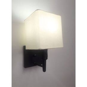 Arandela Quadrada Vivare Md-2019 Base Alumínio Preto Com Interruptor Cúpula em Tecido - Bivolt - Cor: Preta-algodão-crú | Voltagem: 127/220V