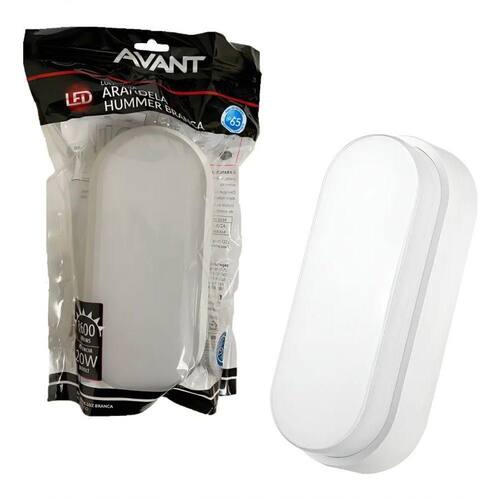 Arandela Tartaruga Hummer Branca Avant 20w 6500k Arandela Tartaruga Led Branca Ip65 20w Branco Frio 6500k AvantA arandela LED Hummer EVO é indicada para ambientes externos, residenciais ou comerciais como rampas de acesso, garagens, escadas, varandas, muros, etc. Corpo em plástico ABS e difusor em polipropileno. Índice de proteção IP65.Vida útil de 15 mil horas (L70)Tensão nominal: 100V - 240V Bivolt AutomáticoPotencia nominal: 20WCorrente nominal: 127V 270 mA / 220V - 180 mAFator de potência: 0,50Frequência: 50-60HzEficiência luminosa: 80 Im/WIRC: 70Lumens: 1600 lmÂngulo de abertura: 120Dimensões: 195 (C) mm x 90 (L) mm x 50 (A) mmPeso: 110 gNÃO PERMITE DIMERIZAÇÃO.