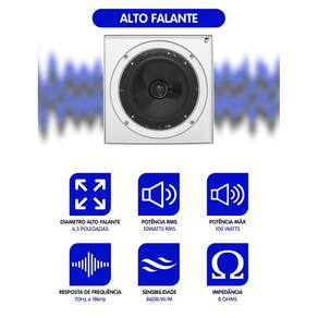 Itens inclusos: - 1 alto-falante kaz de 6,5 polegadas; - 1 arandela quadrada com recorte redondo; - 1 tela de proteção; - suportes para instalação.