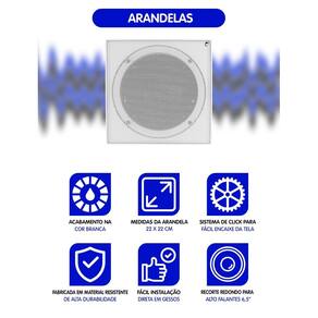 Especificações técnicas arandela: - recorte redondo para alto-falantes de 6,5 polegadas que facilita o alinhamento; - fabricada em material resistente de alta durabilidade; - fácil instalação direta em gessos; - medidas da arandela: 22 x 22 cm; - acabamento na cor branca.